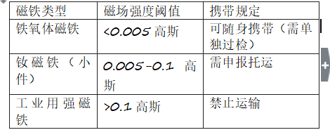 编辑搜图 数据来源:国际民航组织《危险物品安全运输技术细则》2023版 三、科学实验验证与旅客应对策略 [自然衔接]借鉴磁铁科普教育的方法论,我们设计可验证的简易实验方案: 1. 手机指南针测试法:将磁铁靠近手机指南针APP,若指针偏移超过15度即存在风险 2. 纸张吸附实验:能透过3张A4纸吸附回形针的磁铁需特别申报 建议旅客采用"三层包装原则":先用硅胶套隔离,再用铁盒屏蔽磁场,最后用泡沫填充防震。这种方案经测试可降低磁场泄漏90%以上。 四、行业发展趋势与未来展望 [自然衔接]从磁铁历史发展的视角观察,随着磁屏蔽技术的进步: l 日本航空已试点"磁安全舱"运输服务 l 特斯拉最新专利显示,航空专用磁屏蔽材料可使运输限额提升300% l 国际磁材协会预测,2026年将出台全球统一的航空磁铁运输认证标准